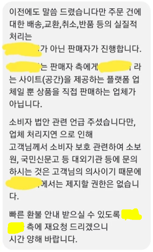 직접 제조해서 판매하는게 아닌, 중간 유통을 하는 경우 판매업체에 연락하라고 하면서 자신들과는 상관없다고 말하는 경우가 있기 때문입니다.