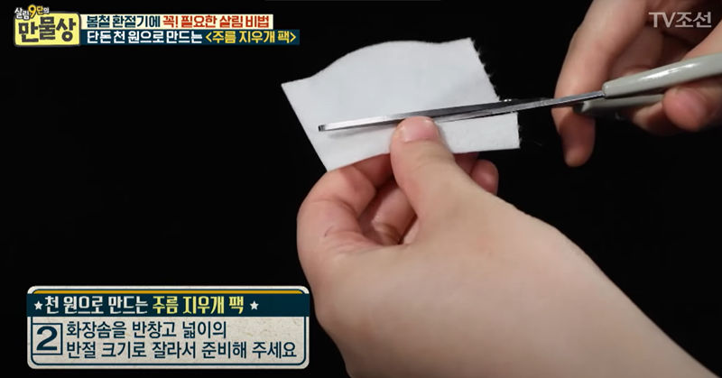 화장솜은 잘라 놓은 살색 테이프의 절반 길이로 잘라서 준비합니다.