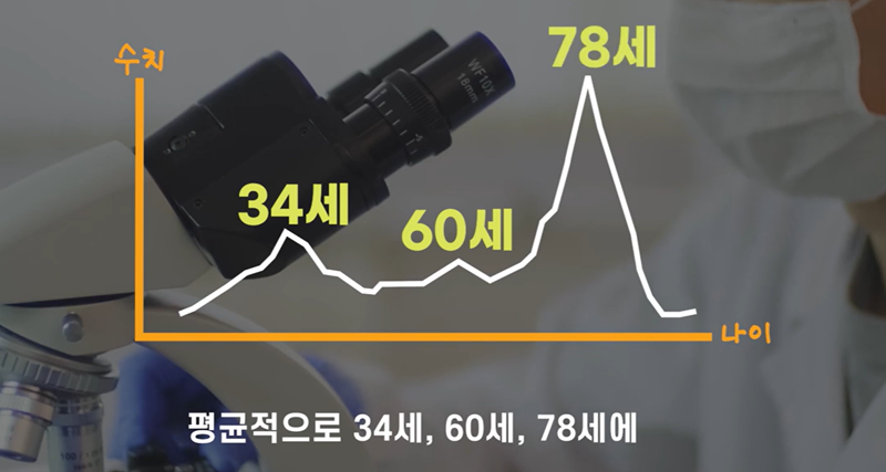 노화가 빨라지는 나이가 따로 있는건데, 미국 스탠퍼드대학교 연구팀이 진행한 '혈장 단백질 수치통계' 자료에 따르면 평균적으로 '34세, 60세, 78세'에 노화 단백질 수치가 변화한다고 합니다.