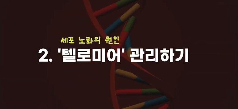세포노화의 원인인 텔로미어 관리가 필요합니다.