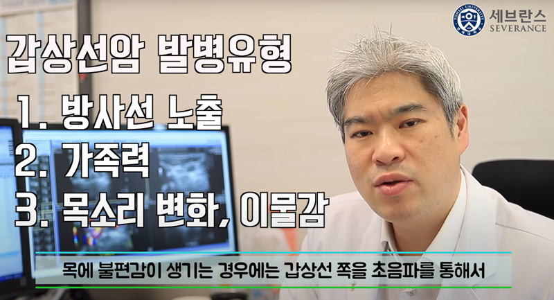 목 부위에 의료용 등 과도한 방사선 노출이 가해지면 갑상선암 유병율이 상승합니다.