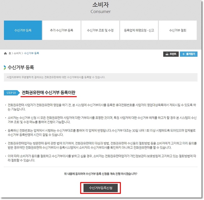 하지만 오늘 알려드릴 전화권유판매 수신거부의사 등록시스템을 이용하여 등록한다면 더 이상 소비자에게 전화로 상품을 판매할 수 없습니다.
