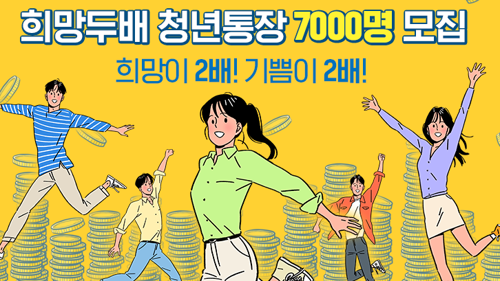 서울시에서 ‘희망두배 청년통장’ 신규 참여자 7,000명을 6월 2일부터 6월 24일까지 모집합니다. ‘희망두배 청년통장’은 일하는 청년이 매월 10만원‧15만원을 2년 또는 3년 간 꾸준히 저축할 경우 서울시에서 저축액의 100%를 추가 적립해주는 제도 입니다.
