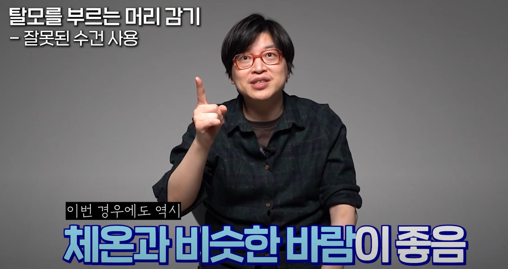 그럴 땐 뜨거운 바람을 사용하더라도 두피에 바람이 직접적으로 닿지 않도록 하고 최대한 빨리 말리는 것이 좋습니다.