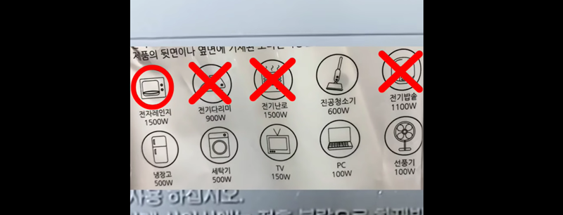 이렇게 되면 1500W인 전자레인지를 사용했을 경우 다른 제품은 사용하기 어려워지는 겁니다.