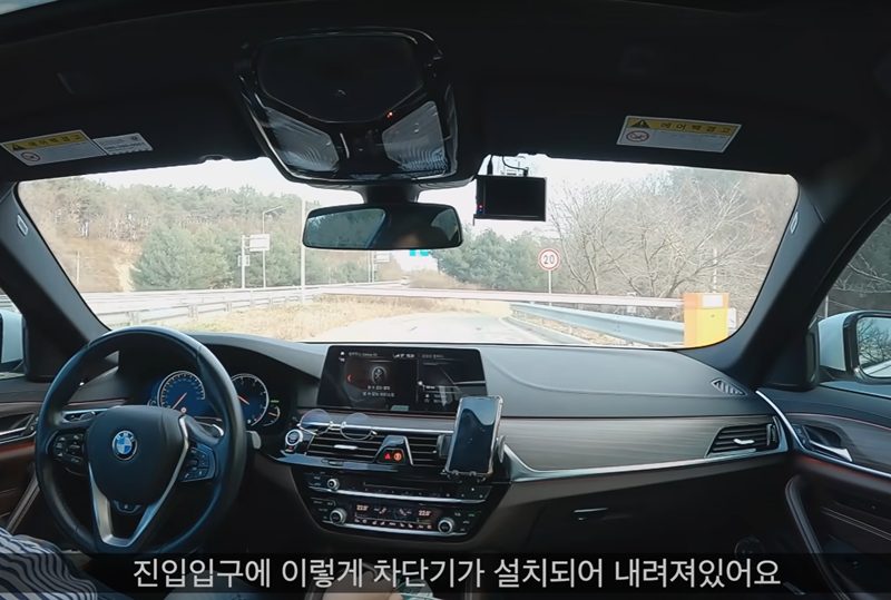톨게이트를 지나면 거의 바로 갓길쪽에 차단기가 내려져 있는 도로를 만나게 됩니다.