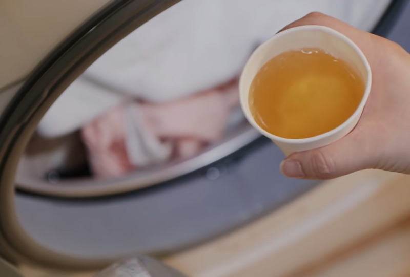 이럴 땐 빨래들을 세탁기에 그대로 두고 식초를 종이한컵 정도 넣어줍니다.